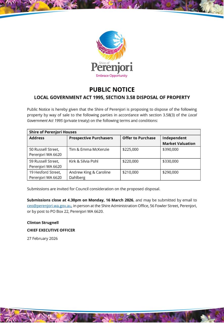 Public Notice - Disposal of Shire Properties